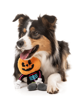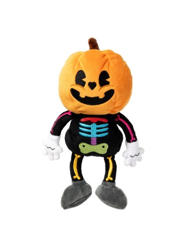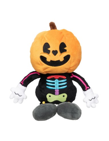 Halb Skelett, halb freche Kürbisfigur – dieses Spielzeug mit internem Soundeffekt ist ein echter Hingucker. Leuchtende Knochen im Dunkeln und das markante Kürbisgrinsen sorgen für sofortige Aufmerksamkeit, während die flexiblen Gliedmaßen ideal zum Werfen, Kauen und ausgiebigen Spielen sind.