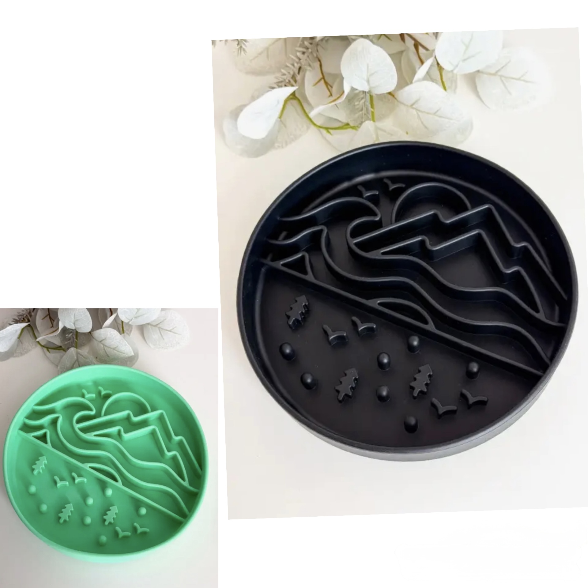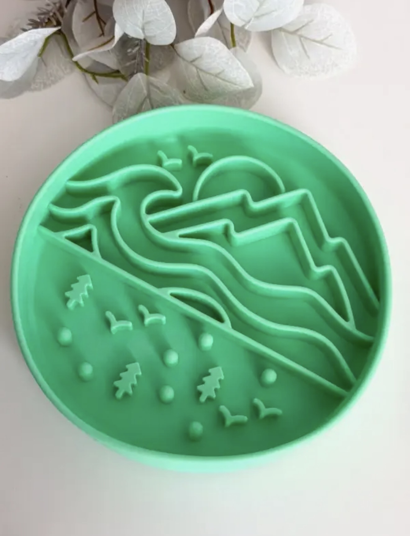 Slow Bowl Wild Horizon – Anti-Schling-Napf aus lebensmittelechtem Silikon mit einzigartigem Berg- und Horizon-Design.