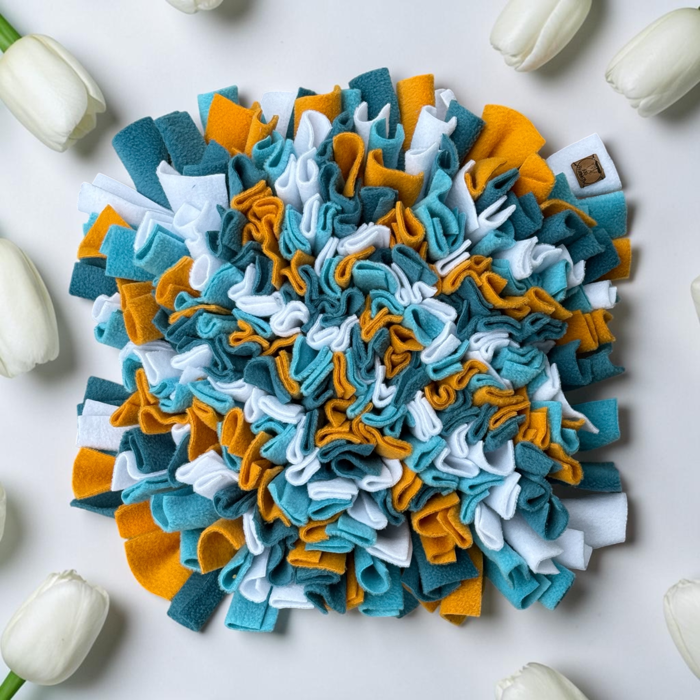Ein Schnüffelteppich dient zur Kopf- & Nasenarbeit von unseren Fellnasen. Einfach Leckerchen im Schnüffelteppich verstecken und suchen lassen.