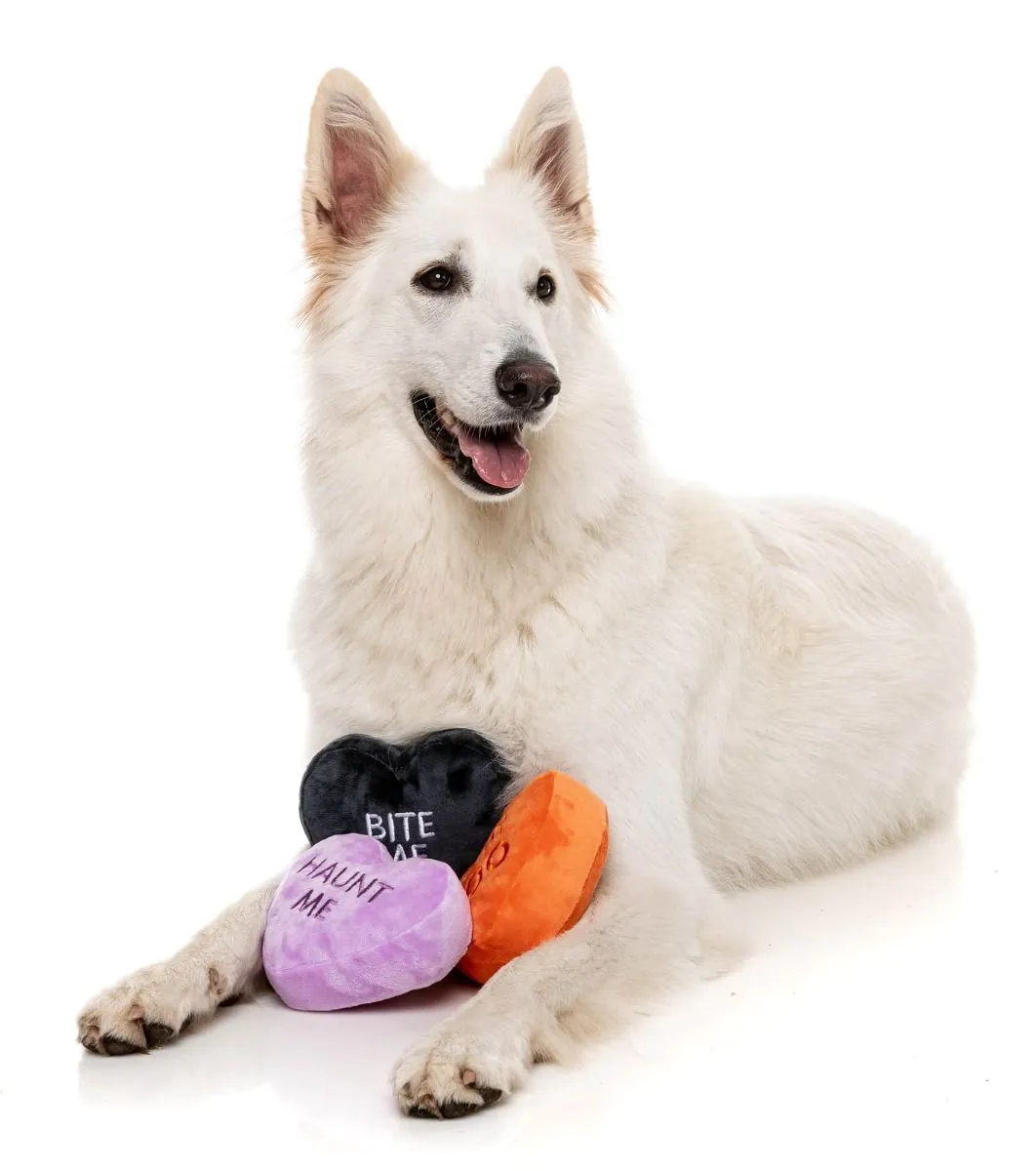 Dieses Halloween kann er beides sein – mit diesem 3er-Pack gruseliger Süßigkeitenherzen. Die superplüschigen Hundespielzeuge von FuzzYard im Halloween-Stil sind mit einem Quietscher für reißzahnartigen Spielspaß ausgestattet und werden von Hunden auf der ganzen Welt geliebt.