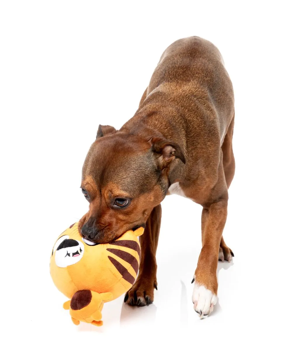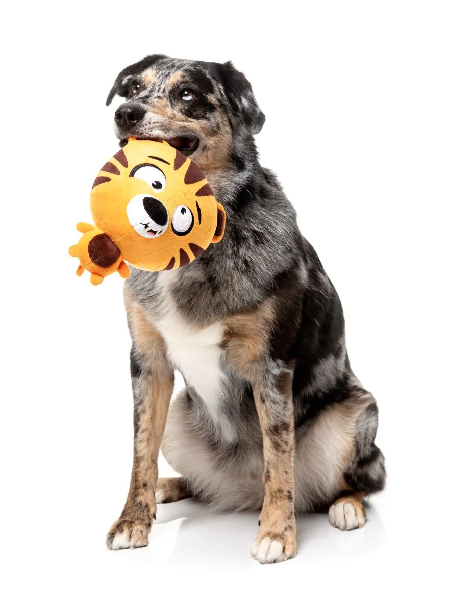 Roarnaldo stürmt aufs Apportieren zu, als hätte er einen Plan. Hat er aber nicht. Er rennt gegen Möbel, verfehlt den Ball komplett und jubelt, als hätte er das absichtlich gemacht. Halb Tiger, halb Knäuel aus Gliedmaßen und Ego. Perfekt für Hunde, die wild spielen, noch wilder fallen und trotzdem so tun, als hätten sie gewonnen.