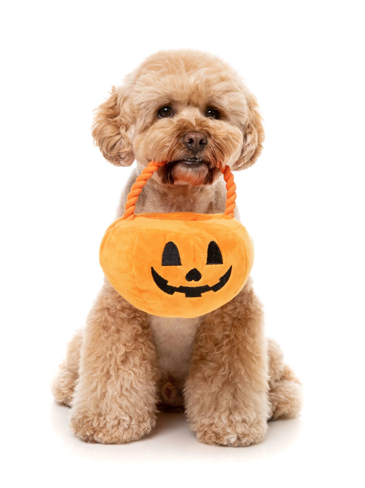 m plüschigen Trick or Treat Kürbiskorb mit Tau kann deine Fellnase an Halloween viele Leckerlis verstauen. Das Spielzeug aus kuschelig weichem Plüsch und ist tolles Geschenk für alle Hunde. Der integrierte Squeaker sorgt für noch mehr Spielspaß!