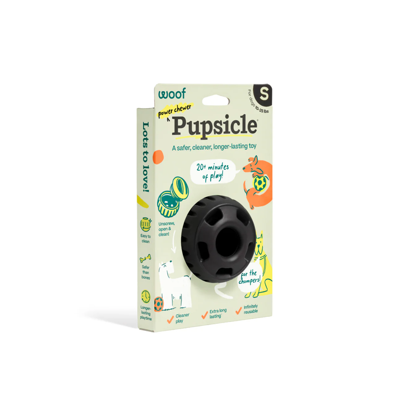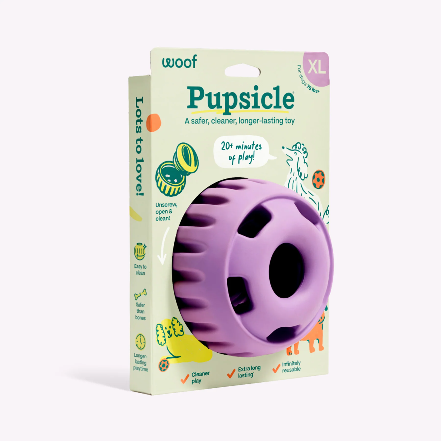 Der Woof Pupsicle ist mehr als nur ein Hundespielzeug. Einfach aufschrauben, mit einem Pop oder Lieblingssnack befüllen und schon beginnt langanhaltender Schleck- und Spielspaß. Während dein Hund konzentriert beschäftigt ist, wird er mental stimuliert und kommt zur Ruhe. Ideal für entspannte Ruhephasen, Training oder gezielte Auslastung bei hoher Energie.