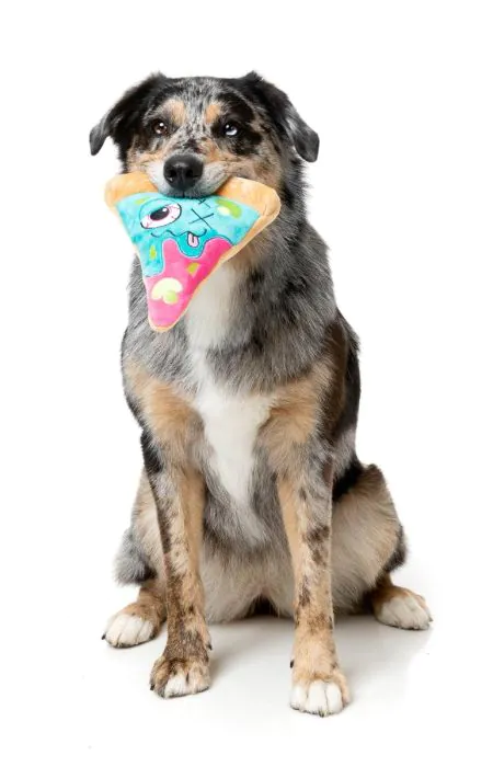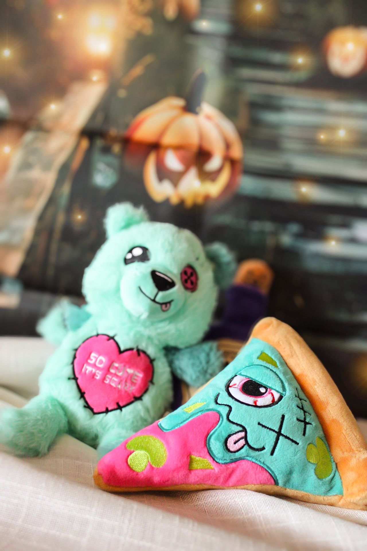 Diese Marg-Eat-Her-Zombizza hat nur eins im Sinn: GEHIRN!!! Die superplüschigen Hundespielzeuge von FuzzYard mit Hallowee-Motiven sind mit einem Quietscher für reißzahn-tastischen Spielspaß ausgestattet und werden von Hunden auf der ganzen Welt geliebt.